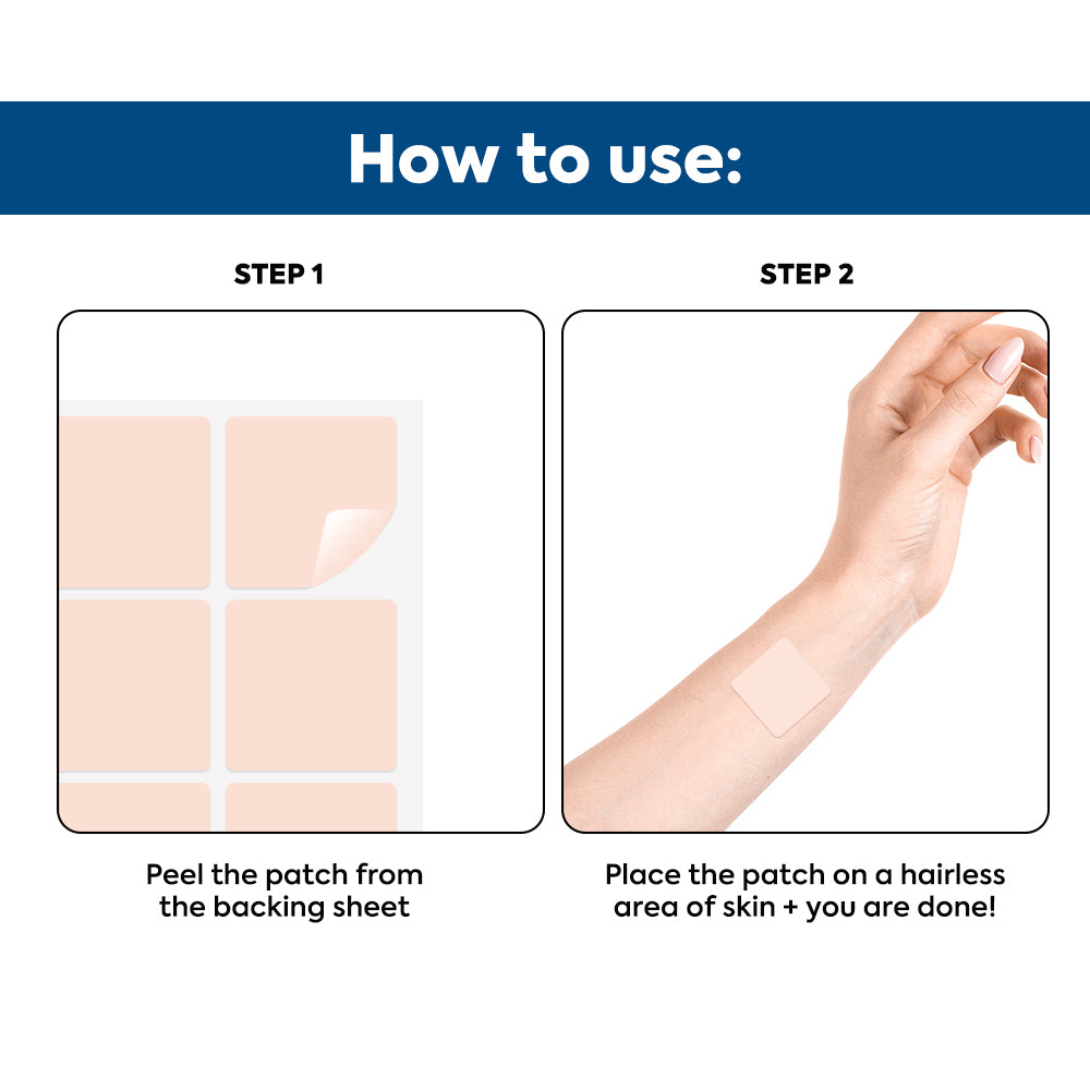 Breng de patch aan op een schone, droge en haarvrije huid. Draag de patch volgens de aangegeven gebruiksduur op de verpakking. Gebruik niet meer dan aanbevolen.